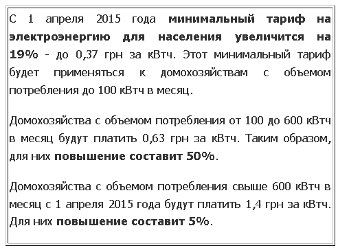 С 1 апреля 2015 года для населения повысят тарифы на электроэнергию: