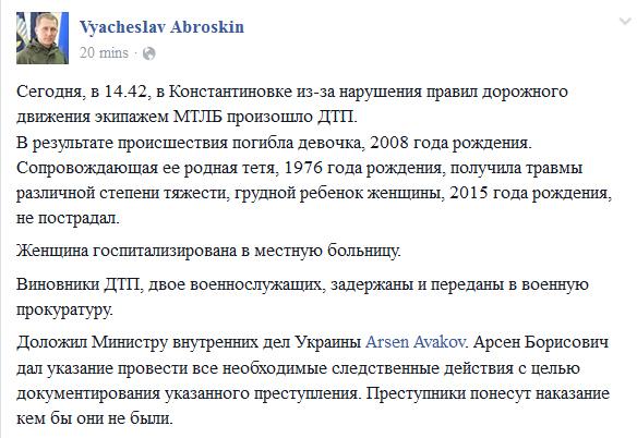 Все украинские военные виновные в гибели в Константиновке 8-летней девочки задержаны. Все украинские военные виновные в гибели в Константиновке 8-летней девочки задержаны. Константиновка Аброськин