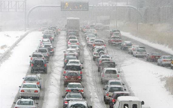 Предвещаю пробки на дорогах завтра с утра, снег вроде как таять не собирается