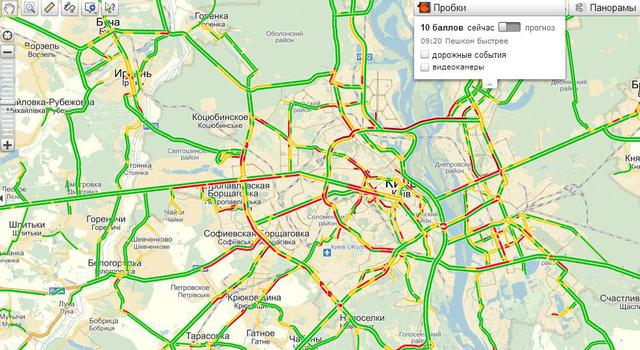 За даними сервісу Яндекс пробки, станом на 9 ранку в місті спостерігалися 10-бальні
