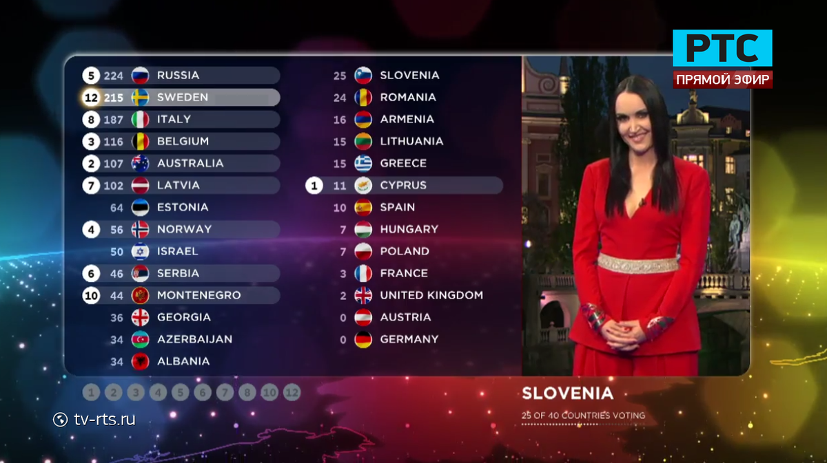 RT @zavvp: Итоговый результат финала Евровидения Швеция 365 Россия 303 Италия 292